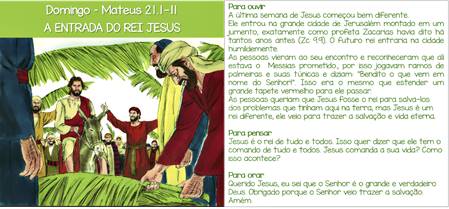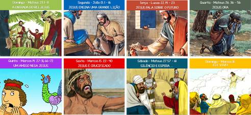 Mostre um calendário desse ano e comente sobre datas que exigem certa preparação como férias, aniversário etc. Mostre que a Páscoa é também uma comemoração que exige preparo e que muitas coisas ocorreram antes da morte e ressurreição de Jesus. Ressalte que foram muitos acontecimentos, mas que você só mostrará alguns.