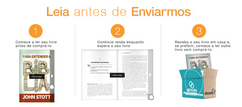 O espanto e a ironia deste escriba se deve à prática longeva da Editora Ultimato nessa área. Basta uma visita ao seu catálogo. Escolha o livro e pronto. Está lá, há quase uma década, o que chamamos de “Leia um trecho”: em alguns casos, mais de 20% do livro à disposição do leitor.