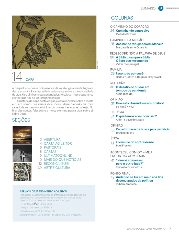 Quem prefere um funeral a uma festa? A resposta é desconcertante: o “sábio”. Aliás, “o sábio pensa na morte com frequência, enquanto o tolo só pensa em se divertir” (Ec 7.2). O texto de Eclesiastes é ainda mais cruel: “É melhor ir a funerais que ir a festas; afinal, todos morrem, e é bom que os vivos se lembrem disso. A tristeza é melhor que o riso, pois aperfeiçoa o coração” (Ec 7.2-3).A matéria de capa da edição de setembro da revista Ultimato é uma conversa sobre a morte e quem somos nós diante dela. Claro, a tristeza é legítima. E, é por esta e outras que precisamos conversar sobre a morte. Negar o luto é não reconhecer a nossa humanidade; e negar a esperança é não reconhecer a divindade a que somos chamados.