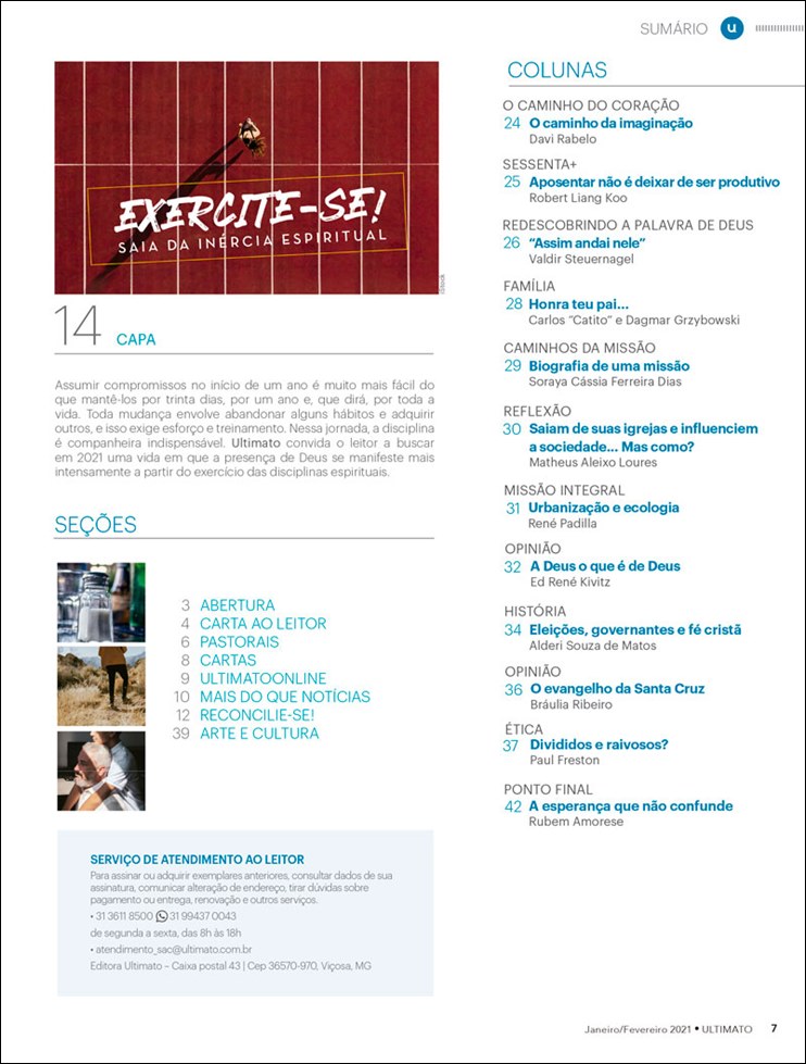 A edição de janeiro-fevereiro de 2021 é um convite para começar de novo: “Exercite-se – saia da inércia espiritual”. E a promessa expressa pelo salmista é animadora: “São felizes os que de ti recebem forças, os que decidem percorrer os teus caminhos” (Sl 84.5, NVT).