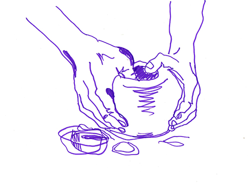 Talvez a principal lição, a que conecta todas as outras, seja esta. Quando pego o meu caderninho e folheio meus desenhos dos últimos tempos, sinceramente, parecem todos iguais em termos de qualidade técnica. Nada acontece de uma hora para outra. Só quando eu vejo caderninhos de anos anteriores é que sou capaz de distinguir como a minha linha amadureceu. Os avanços são tímidos, ficam espreitando, não aparecem de uma vez. Sou cristã desde a infância, conheço as histórias e pratico a oração mesmo antes de saber ler. Os avanços são lentos. Como é rápida a descida do escorregador de um vício, é lenta a escalada para terras firmes. Mas pouco a pouco, dia a dia, posso construir uma fé mais robusta. A linha penteada, insegura, vira um traço consciente e preciso. O grão de mostarda vira arbusto e passa a dar abrigo aos passarinhos. O bloco de barro vira um vaso.