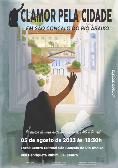 No dia 5 de agosto o "Clamor pela Cidade" se reunirá em São Gonçalo do Rio Abaixo para uma noite de clamor pelas cidades de Minas Gerais e do Brasil. O encontro será no Centro Cultural de São Gonçalo do Rio Abaixo, Rua Henriqueta Rubim, 57, Centro, às 18h30. Você é convidado!