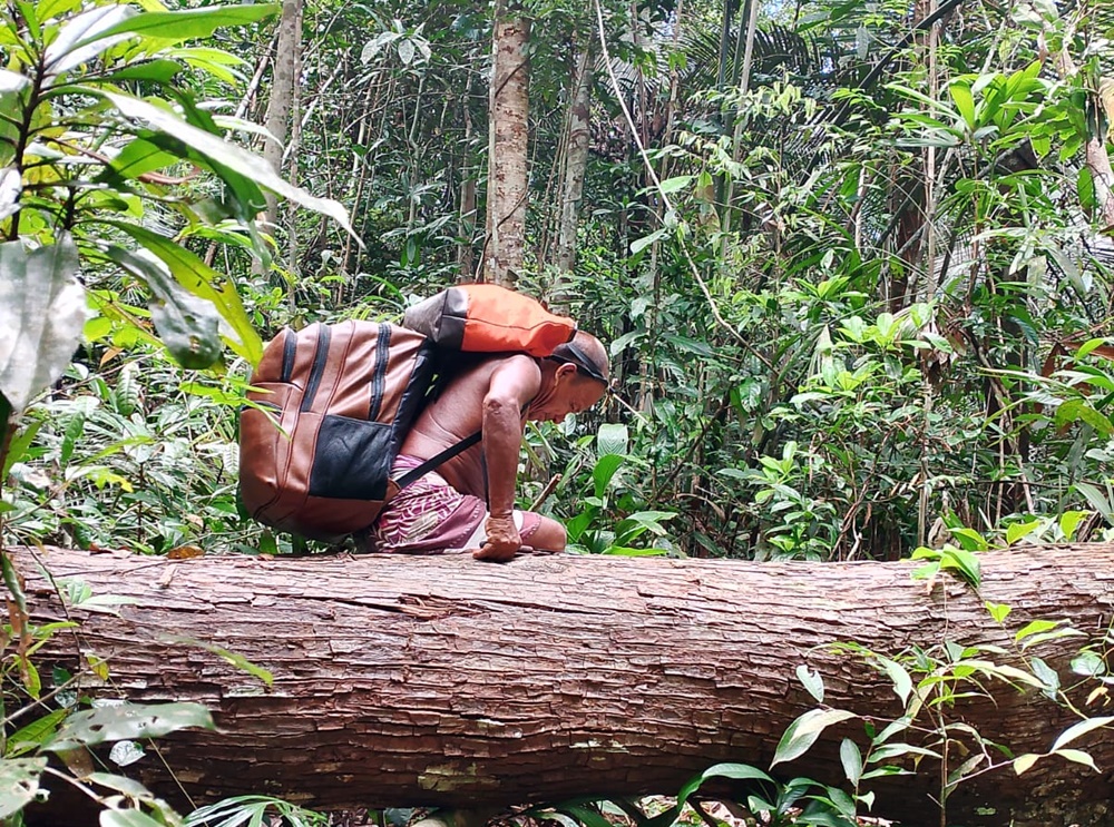 2. Aristides caminhando na floresta rumo a Parintins, CTL.