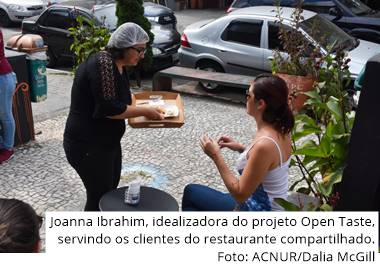 Joanna Ibrahim, refugiada síria que vive no Brasil e idealizadora do Open Taste, explicou que o projeto consiste em fornecer aos chefes de cozinha refugiados a infraestrutura, gestão e marketing, em contrapartida eles oferecem seus pratos carregados de sabor, histórias e cultura. “Nos últimos dois meses trabalhamos com oito famílias de seis países diferentes e faturamos R$ 15 mil e eles receberam cerca de 60% desse valor”, conta a jovem empreendedora.