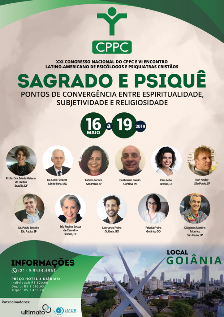 No período de 16 a 19 de maio, acontece o XXI Congresso Nacional do Corpo de Psicólogos e Psiquiatras Cristãos (CPPC), em Goiânia, Goiás. Sob o tema “Sagrado e Psiquê: Pontos de Convergência entre espiritualidade, subjetividade e religiosidade”, o encontro quer promover um momento de reflexão e debate sobre os aspectos de convergência entre psicologia e religião.