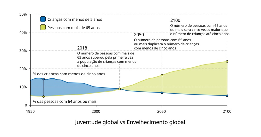 - O envelhecimento da população é sem precedentes — Não tem paralelo na história da humanidade, com um envelhecimento ainda mais rápido e intenso a caminho.