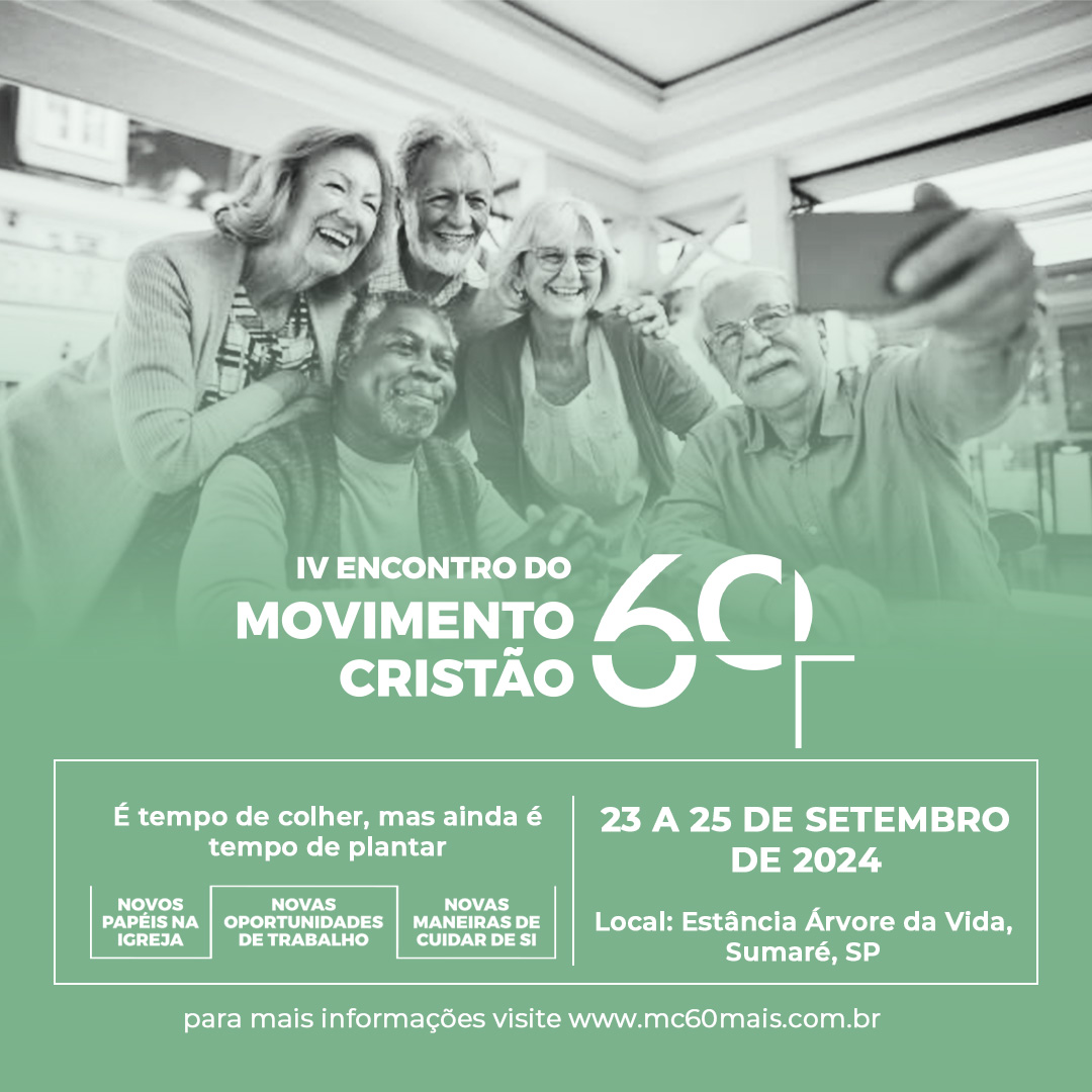 » Movimento Cristão 60+ anuncia a programação do seu 4° Encontro, de 23 a 25 de setembro de 2024 em Sumaré, SP