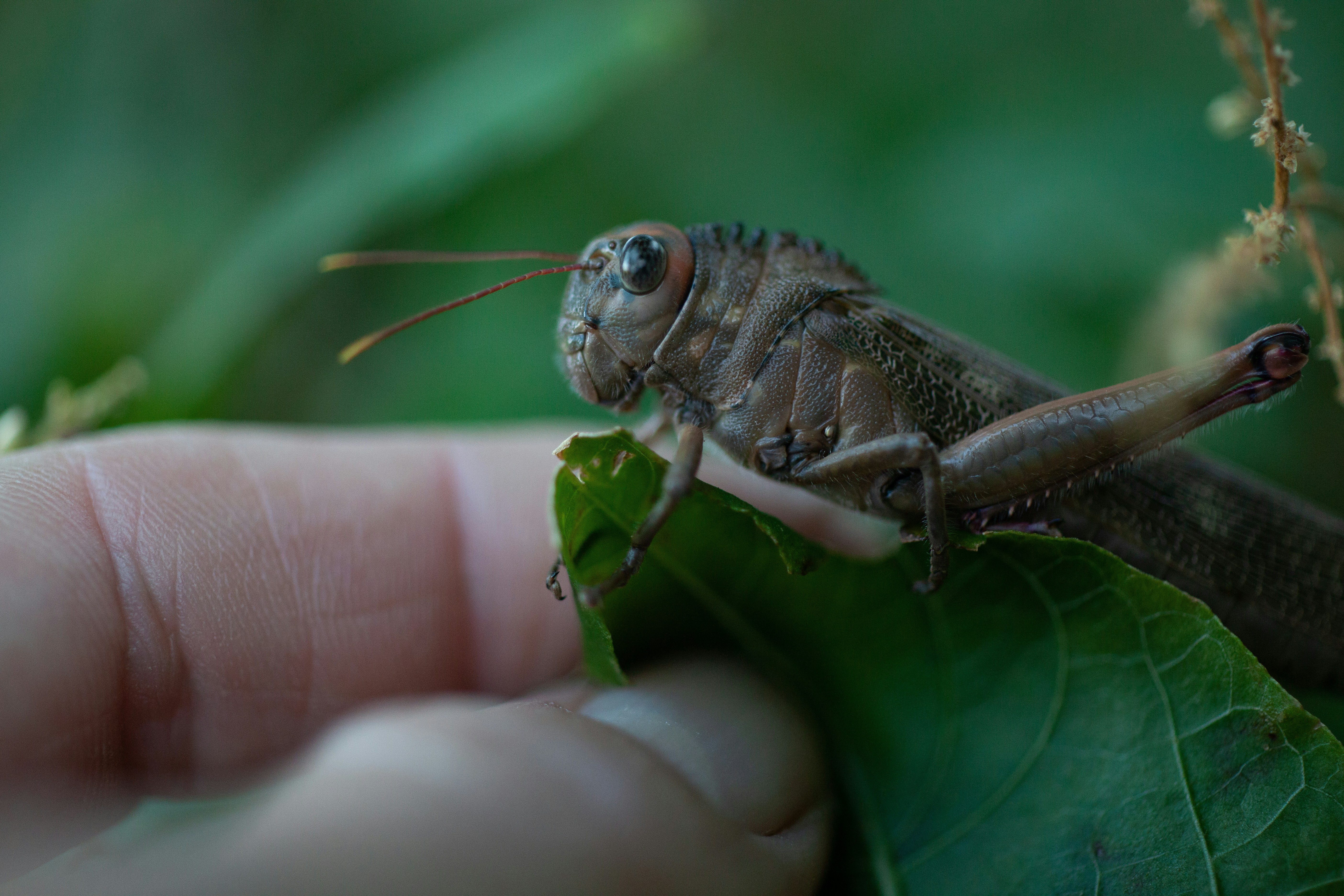 Agachada, abrindo o mato com as mãos, pensei: estou buscando um animal cujo propósito final, após todo o processo de metamorfose, é ser entregue para que outro possa sobreviver. Ironicamente eu, mamífera que sou, primata ostentando cérebro desenvolvido com a capacidade de abstrair, estava tendo aulas com os pequeninos gafanhotos que procurava.