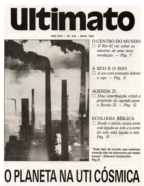 Em 1992, a matéria de capa (foto) da edição 216 da revista Ultimato não poupou elogios ao Rio: “O centro do mundo não é a Terra, como queria Ptolomeu, nem o Sol, como queria Copérnico. O centro do mundo é o Rio de Janeiro”. O mesmo texto poderia também inaugurar o site igrejasecocidadas.org.br aqui no portal. O título daquela matéria não envelheceu nem um pouco: “O Planeta na UTI Cósmica”. Há exatos 20 anos.