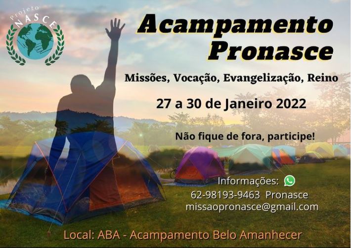 No período de 27 a 30 de janeiro acontece o Acampamento Pronasce, em Pontalina, Goiás. O evento é promovido pela Pronasce, uma organização evangélica, fundada no Brasil em 2001, que tem como objetivo difundir o evangelho de Jesus Cristo entre os povos de língua portuguesa, oferecendo capacitação, na perspectiva de missão integral. A programação do acampamento abordará temas como missões, vocação, evangelismo e reino de Deus.