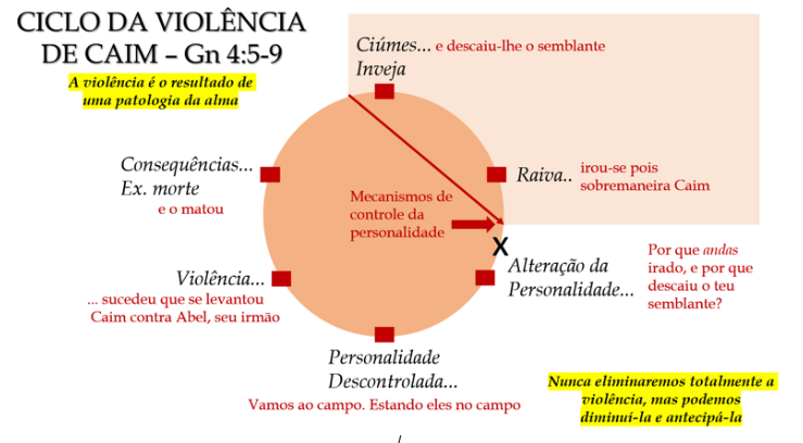 Algo tão simples, aparentemente, como o ciúme quando não controlado, deixa crescer, e de modo profundo e intenso, resultando em ações de violência. Deus havia advertido Caim ao perguntar: “Por que você está furioso? Por que se transtornou o seu rosto? Se você fizer o bem, não será aceito? Mas se não o fizer, saiba que o pecado o ameaça à porta; ele deseja conquistá-lo, mas você deve dominá-lo” (Gn 4:6-7).