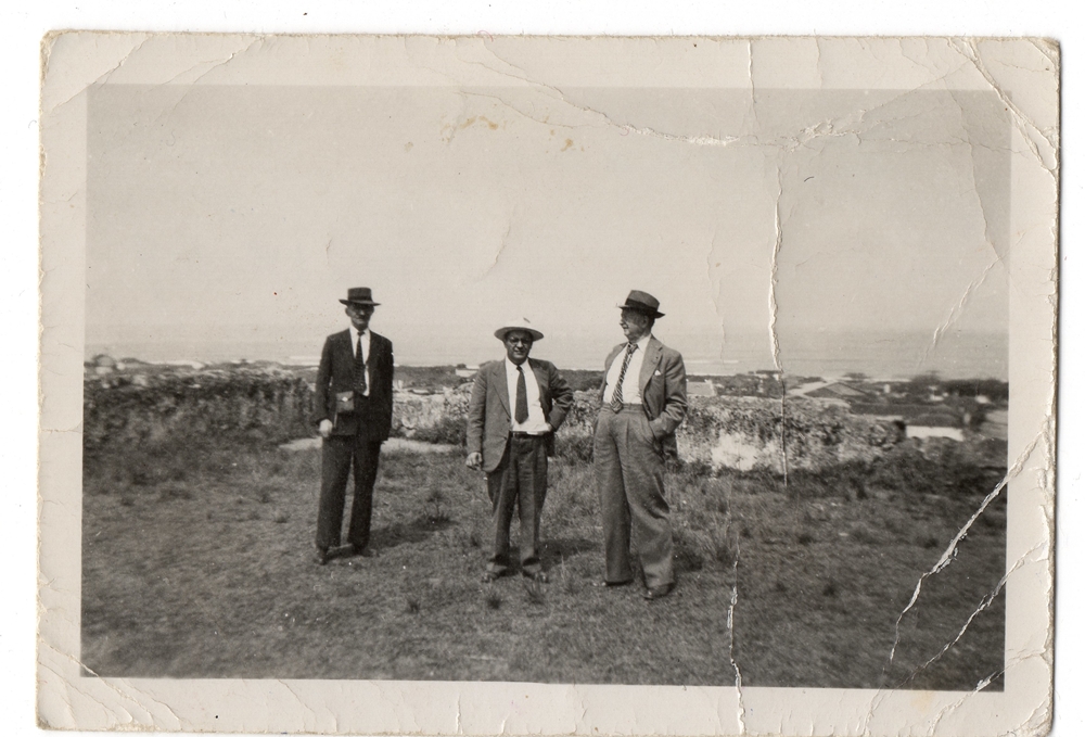 1. Léonard, o professor Cruz Costa e Lucien Febvre em Itanhaém (litoral de São Paulo). Setembro de 1949.