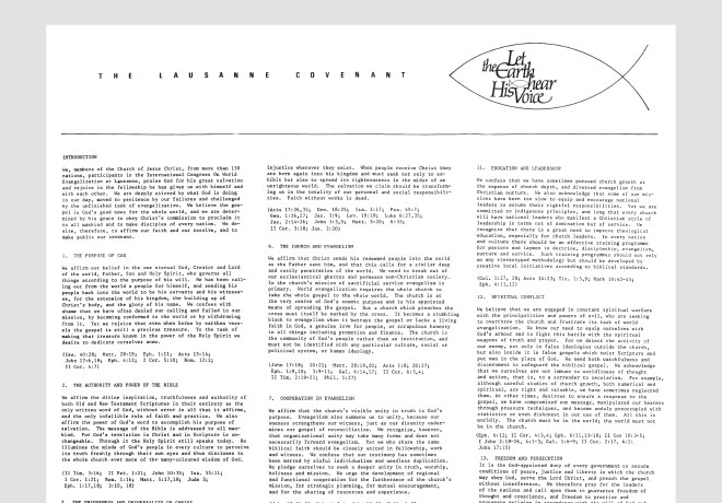 O Pacto de Lausanne, que ecoou as vozes do congresso de 1974, foi adotado como base para centenas de iniciativas colaborativas durante o restante do século 20, sendo considerado um dos documentos mais significativos da história da igreja moderna. A justiça social, por muito tempo identificada como uma preocupação apenas para os adeptos de "um evangelho social", era agora declarada como responsabilidade bíblica para os cristãos evangélicos. Esse foi um momento decisivo para a igreja.