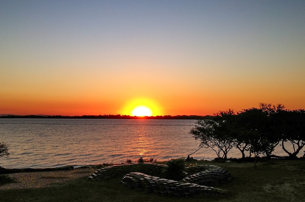 O Guaíba e seus afluentes adormeceram por mais de 80 anos. Ficaram a ver descer o sol, das suas margens, colorindo uma cidade, de orla remodelada e bela, de matizes de um vermelho arrebatador! Quem não ama o pôr do sol do Guaíba é porque não o conheceu. Pintei quadro de mensagem eterna estes dias, em suas margens. Fiquei extasiado como se nunca o conhecera! O que desenhei não retratava o que seria impossível refletir. Mas revelava em meus desenhos e letras, quem aquela obra de arte criara... E eu não resisti: deixei um muito obrigado aos Céus...