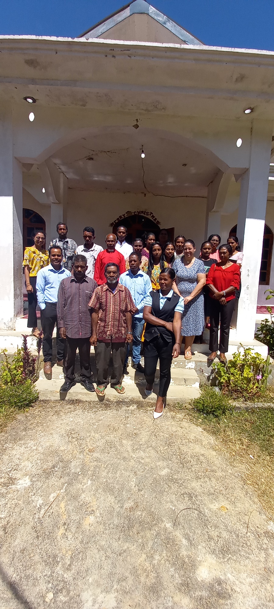 Com dois meses eu já falava Tétun o suficiente para viajar sozinha, mas não me sentia apta para ensinar. Apesar da minha incapacidade, Deus colocou no meu caminho uma moça que me pediu para ensinar-lhe a Bíblia - eu sempre conto essa história dizendo que “este é o sonho de todo missionário”. E foi assim, com pouco conhecimento linguístico e muito temor, que eu comecei meu ministério de evangelização no Timor ensinando a Fátima na cozinha da pensão onde ela mora. Por nos reunirmos na cozinha, sempre havia quem ouvisse ou pedisse oração no final do estudo, nas minhas anotações, eu escrevi o nome de quase vinte pessoas da pensão com quem orei.Como não há um curso formal de tétun no Timor-Leste, a partir do terceiro mês, eu comecei a passar alguns dias em Loes a fim de ouvir e falar apenas tétun. Logo na primeira visita, a liderança me convidou para ensinar os irmãos que se reúnem lá e eu tive que pedir que esperassem até que eu aprendesse um pouco mais da língua e da cultura. Um dia antes de completar cinco meses de campo, lá estava eu, com um pouco mais de conhecimento linguístico e o mesmo temor, ensinando na pequena Igreja Presbiteriana em Loes.