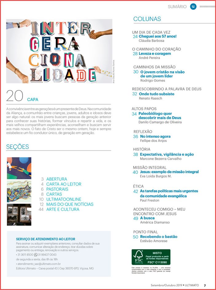Pronto, é essa a matéria de capa da edição de setembro da revista Ultimato. E a boa notícia é que Jesus é uma verdade intergeracional. Ou seja, as diferentes gerações permanecem quando vinculadas a Cristo. Melhor, a nossa esperança em Jesus é um tipo de esperança válida ontem, hoje e amanhã.