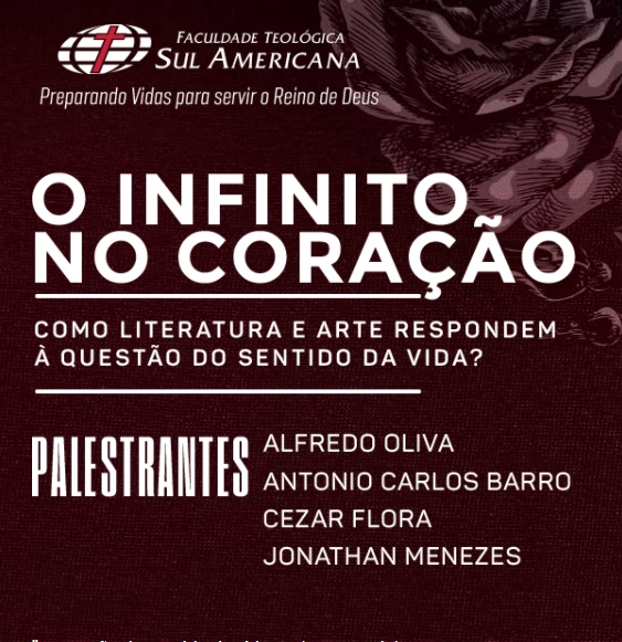 Promovido pela Faculdade Teológica Sul-Americana (FTSA), o seminário temático tem como proposta refletir teologicamente sobre o sentido da vida, seguindo em conversas com a literatura e com a arte. São dois de seminário. No primeiro, o evento aborda a questão: “Existe um sentido em nossas vidas que não seja aniquilado pela inevitável morte, que nos aguarda?”. E, no segundo dia, o tema: “Como as diversas formas de expressão de arte, especialmente a pintura, têm auxiliado seres humanos a responder à questão do sentido da vida ao longo da história?”. O seminário acontece nos dias 9 e 10 de junho e os palestrantes são: Alfredo Oliva, Antonio Carlos Barro, Cezar Flora e Jonathan Menezes. Clique aqui e saiba mais.