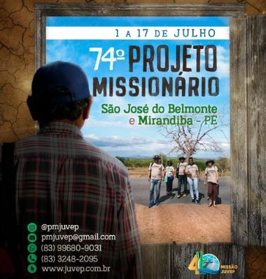 O 74º Projeto Missionário da Missão acontece entre os dias 1º e 17 de julho nas cidades de São José do Belmonte e Mirandiba em Pernambuco. As equipes são formadas por estudantes, profissionais cristãos e aposentados que dedicam suas férias à evangelização no interior nordestino. A idade mínima permitida para os projetistas é de 18 anos. Cada candidato passa por um simples processo seletivo e é recomendado por sua igreja.