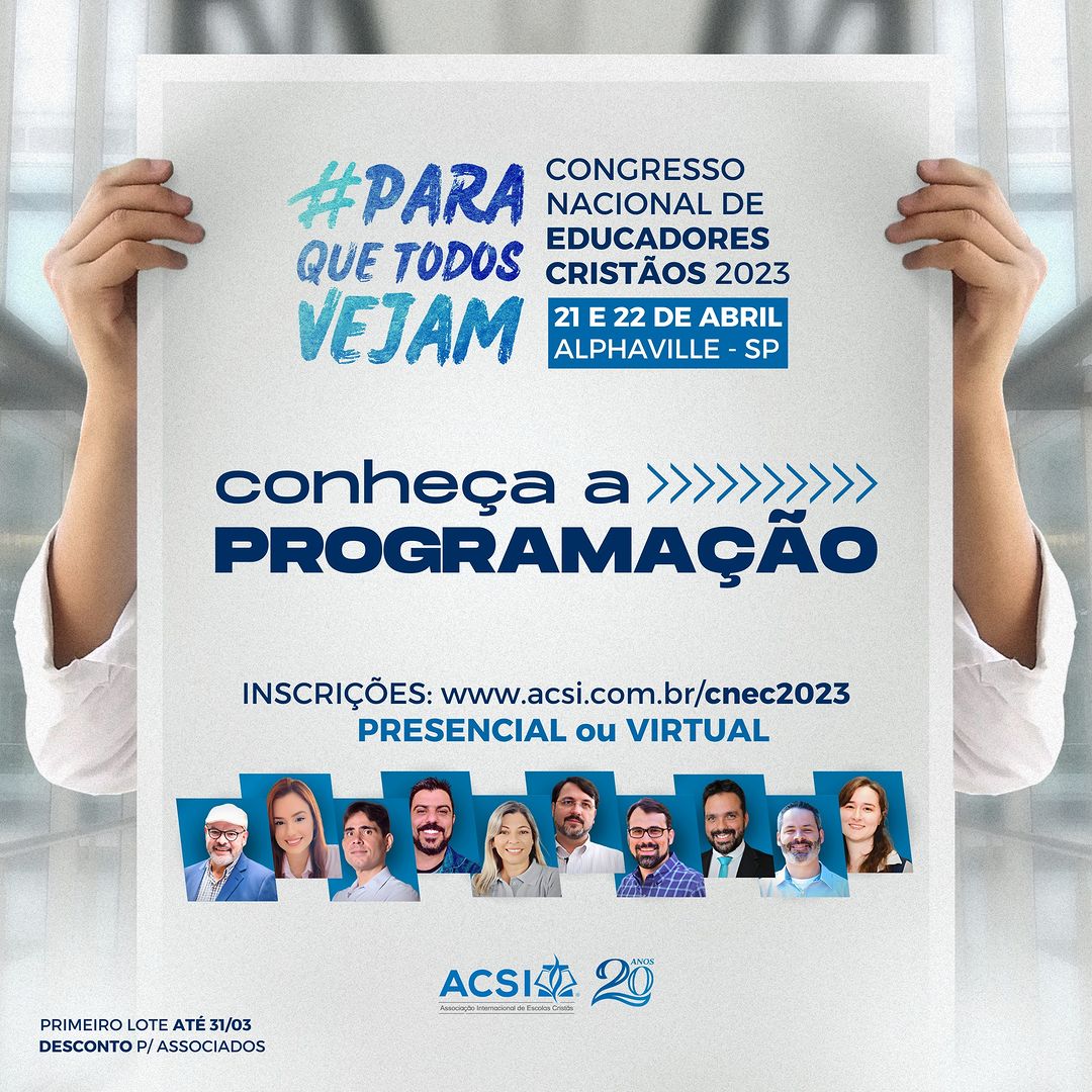 Congresso Nacional de Educadores Cristãos (CNEC)Idealizado para diretores, professores, coordenadores, auxiliares, mantenedores e pais de todas as regiões do Brasil, o CNEC 2023 quer ajudar escolas e educadores cristãos a compreenderem melhor a vocação e a oportunidade de servir ao Reino de Deus por meio da educação escolar cristã.