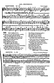 Figura 3 – Exemplo de hinário ao estilo americano – Hino A mighty fortress/Castelo Forte publicado em Hymnal of the Methodist Episcopal Church, 1878, Primeiro hinário da era moderna com partitura a 4 vozes e texto na mesma página.