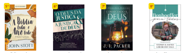E os livros mais vendidos? Bem, dois títulos, ambos do teólogo e pastor inglês John Stott, merecem destaque. O primeiro, O Discípulo Radical, porque repetiu 2020 e 2019. O Segundo, a Série O Cristão Contemporâneo, um Box com 5 volumes, um lançamento de julho do ano passado, organizado pelo conhecido teólogo Tim Chester.