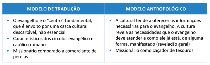 Por fim, o capítulo traz elementos a serem considerados em uma compreensão fiel da contextualização.Ambos os modelos têm pontos fortes e fracos. O de tradução enfatiza a redenção, a mensagem cristológica, mas não leva em conta a cultura local, e a comunicação do evangelho, muitas vezes, torna-se irrelevante à cultura. O modelo antropológico, por sua vez, enfatiza a criação (cultura é boa, cenário da obra de Deus), a revelação geral, contudo tende a um sincretismo, aceitando de forma acrítica questões locais.