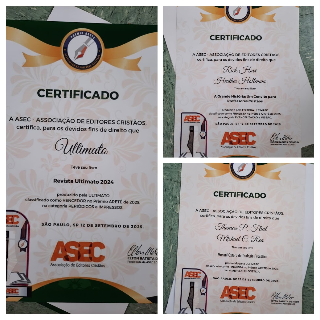 Entre os livros, mais de uma dezena de títulos receberam o Premio Areté ao longo dos anos. A Cruz e o Paradoxo da Autoestima, Deus em Questão, O Teste da Fé, Para (Melhor) Enfrentar o Sofrimento, Jesus e a Terra, O Discípulo Radical e vários outros. Esse ano, os lançamentos A Grande História - um convite para professores cristãos e Manual Oxford de Teologia Filosófica, foram finalistas na premiação.Ultimato foi também surpreendido com a premiação da nossa diretora geral, Klênia Fassoni, como Personalidade Editorial do ano. É com gratidão a Deus e muita alegria que recebemos e dividimos com os leitores essas boas notícias.