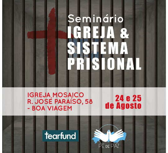Segundo dados do Ministério da Justiça, o Brasil tem a terceira maior população carcerária do mundo. A situação, no entanto, é ainda mais alarmante: nosso sistema prisional tem cerca de 368 mil vagas, ocupadas atualmente por mais de 700 mil detentos. A igreja deve de alguma forma intervir nessa realidade? O que pode ser feito? É com esse intuito que o movimento PE de Paz, com apoio da Tearfund, promove o seminário Igreja & Sistema Prisional.