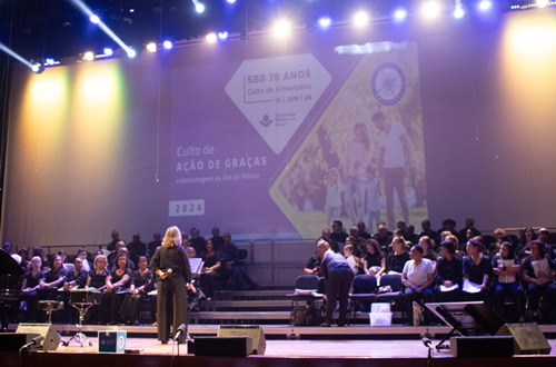 O aniversário de 76 anos da Sociedade Bíblica do Brasil foi celebrado com uma programação especial incluindo palestras, exposições e música no dia 15 de junho de 2024, no Auditório Ruy Barbosa, Universidade Presbiteriana Mackenzie.