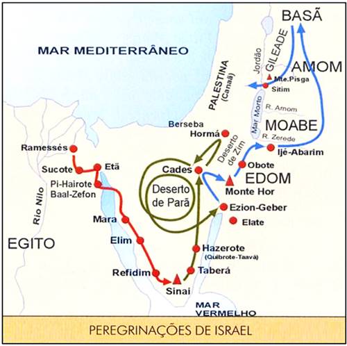 Entretanto, “Deus não os levou pelo caminho da terra dos filisteus, posto que mais perto, pois disse: Para que porventura o povo não se arrependa, vendo a guerra, e tornem ao Egito. Porém, Deus fez o povo rodear pelo caminho do deserto perto do Mar Vermelho” (Êx 13.17-18).Mesmo pelo “caminho do deserto”, Israel poderia ter chegado a Canaã em dois anos. Contudo, suas jornadas do Egito a Canaã levaram quarenta anos! Tal aconteceu porque, agravando-se a murmuração do povo, Deus os fez perambular pelo deserto por mais trinta e oito anos, até morrerem todos os que saíram do Egito com Moisés, exceto Josué e Calebe, que não murmuraram. As jornadas e acampamentos de Israel no deserto, suas murmurações e as extraordinárias provisões de Deus estão narradas no livro do Êxodo e resumidas em Números 33.