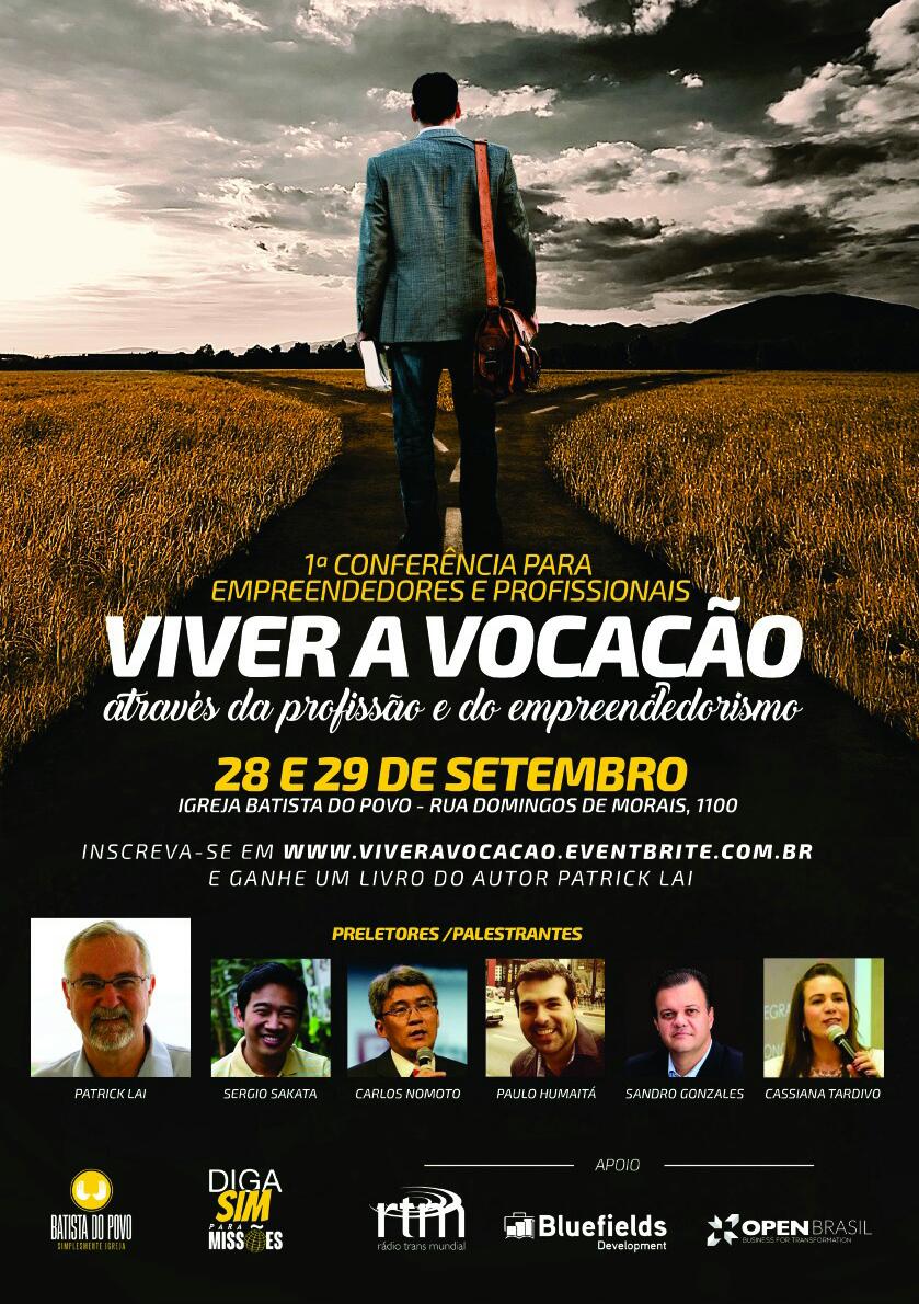 Acontece em 28 e 29 de setembro a 1ª Conferência para Empreendedores e Profissionais, com o tema “Viver a vocação através da profissão e do empreendedorismo”, promovida pela Secretaria de Integração Missionária da Igreja Batista do Povo (IBP), em São Paulo, SP. Patrick Lai, referência internacional na área de missões e negócios, será o preletor principal.Samuel da Silva, pastor de Missões da IBP diz que a ideia de conscientizar profissionais e empreendedores surgiu ao ouvir, em conversas com vários membros da igreja depois dos cultos, sobre a dificuldade que tinham em viver a fé no ambiente de trabalho e no mundo corporativo. “Estas conversas me despertaram para observar o que estava por trás destas crises pessoais, então descobri que havia uma crise no coração de muitos profissionais e empreendedores”, completa.