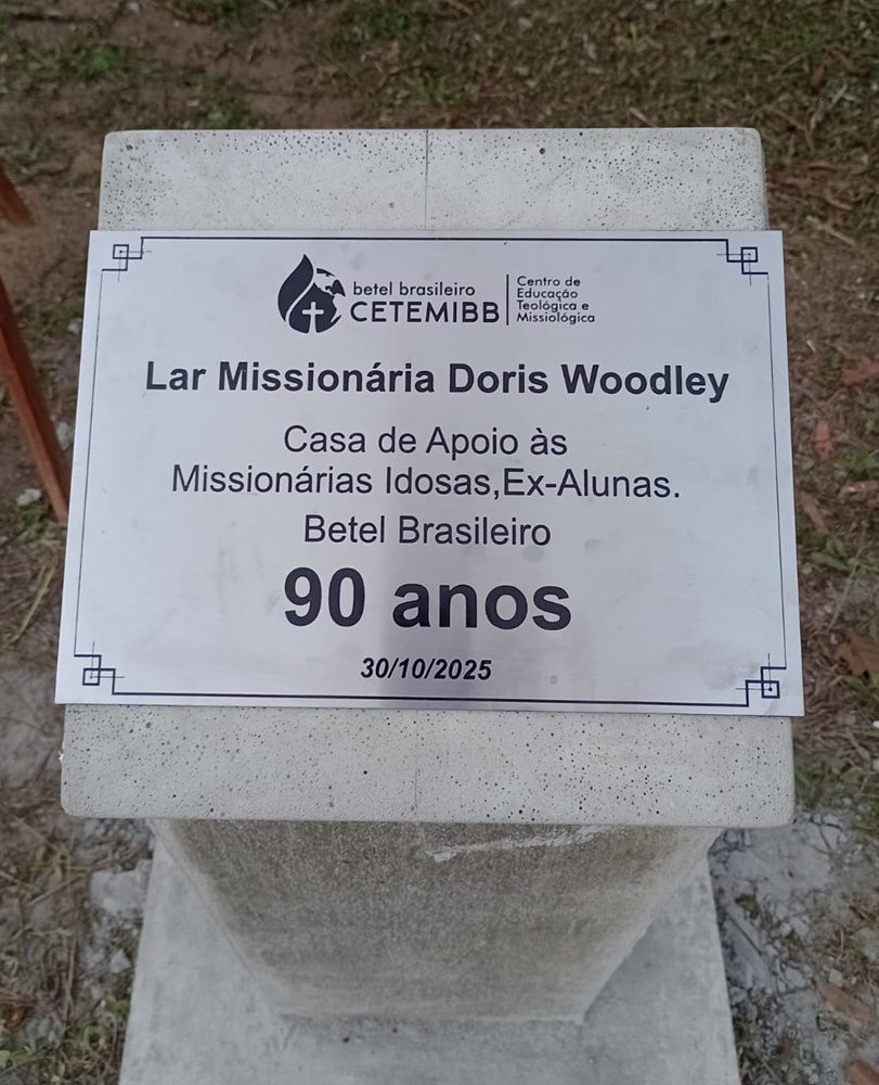 Lar Doris Woodley – uma casa de apoio para missionáriasEntre os eventos dos 90 anos, no dia 30 de outubro, aconteceu o lançamento da pedra fundamental do Lar Doris Woodle, uma casa de apoio para missionárias idosas e ex-alunas do Betel Brasileiro. O evento foi organizado pela Dra. Durvalina Barreto Bezerra, diretora do CETEMIBB, com ampla participação da comunidade betelina.